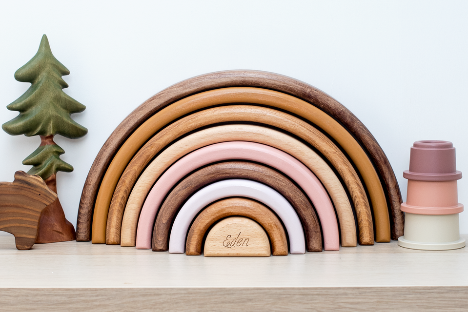 Beautifully smooth wooden toys from the USA made from maple and walnut.